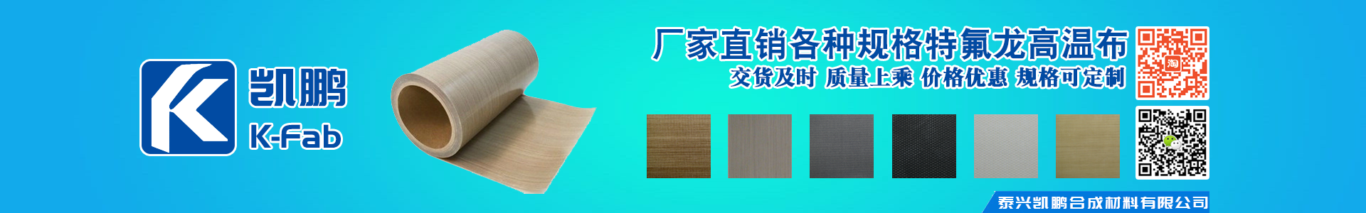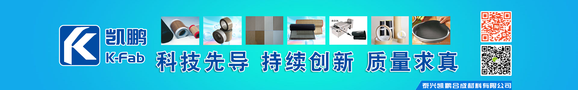 泰興市凱鵬合成材料有限公司是以聚四氟乙烯(PTFE)和硅橡膠涂層制品為特色的集生產(chǎn)和貿(mào)易為一體的復(fù)合型企業(yè),立足于氟、硅系列浸漬制品的研發(fā)、生產(chǎn)和銷售,是中國(guó)氟、硅合成材料的開(kāi)拓者、行業(yè)中的佼佼者。 公司主要產(chǎn)品有: PTFE特氟龍耐高溫布、層壓布、 硅膠布、特氟龍網(wǎng)格輸送帶、粘合機(jī)帶、特氟龍膜膠帶、特氟龍粘膠帶、特氟龍烤盤片、硅膠布粘膠帶和凱芙拉布等產(chǎn)品。產(chǎn)品被廣泛應(yīng)用在航天、航空、太陽(yáng)能、汽車、電子、電器、高溫絕緣材料、食品包裝、塑料制品、造紙、印刷、印染、服裝、化工防腐等工程。 公司秉承“以質(zhì)量求生存,以信譽(yù)求發(fā)展,以用戶為上帝,以務(wù)實(shí)為人品!”的經(jīng)營(yíng)理念,本著“科技先導(dǎo),持續(xù)創(chuàng)新,質(zhì)量求真,顧客滿意”的質(zhì)量方針。目前公司產(chǎn)品已遠(yuǎn)銷歐美、中東、東南亞、臺(tái)灣、香港等幾十個(gè)國(guó)家和地區(qū),在國(guó)內(nèi)外市場(chǎng)上獨(dú)占鰲頭。熱忱歡迎廣大客戶前來(lái)考察、指導(dǎo)、洽談業(yè)務(wù)。經(jīng)營(yíng)理念:品質(zhì)至尊、誠(chéng)信為本發(fā)展戰(zhàn)略:立足氟硅、同心多圓、引領(lǐng)市場(chǎng)、創(chuàng)造特色質(zhì)量方針:科技為先,質(zhì)量為本,服務(wù)為榮,改進(jìn)